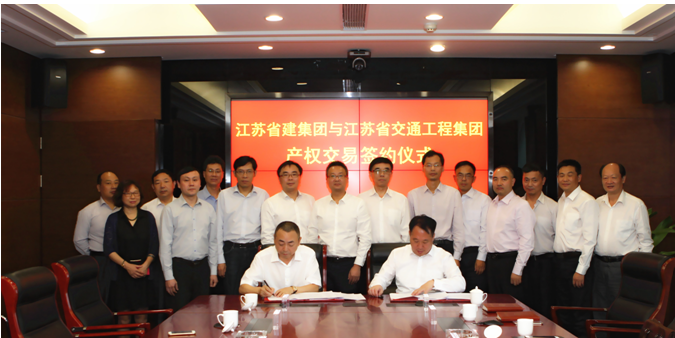 江蘇省建集團(tuán)與江蘇省交通工程集團(tuán)舉行產(chǎn)權(quán)交易簽約儀式